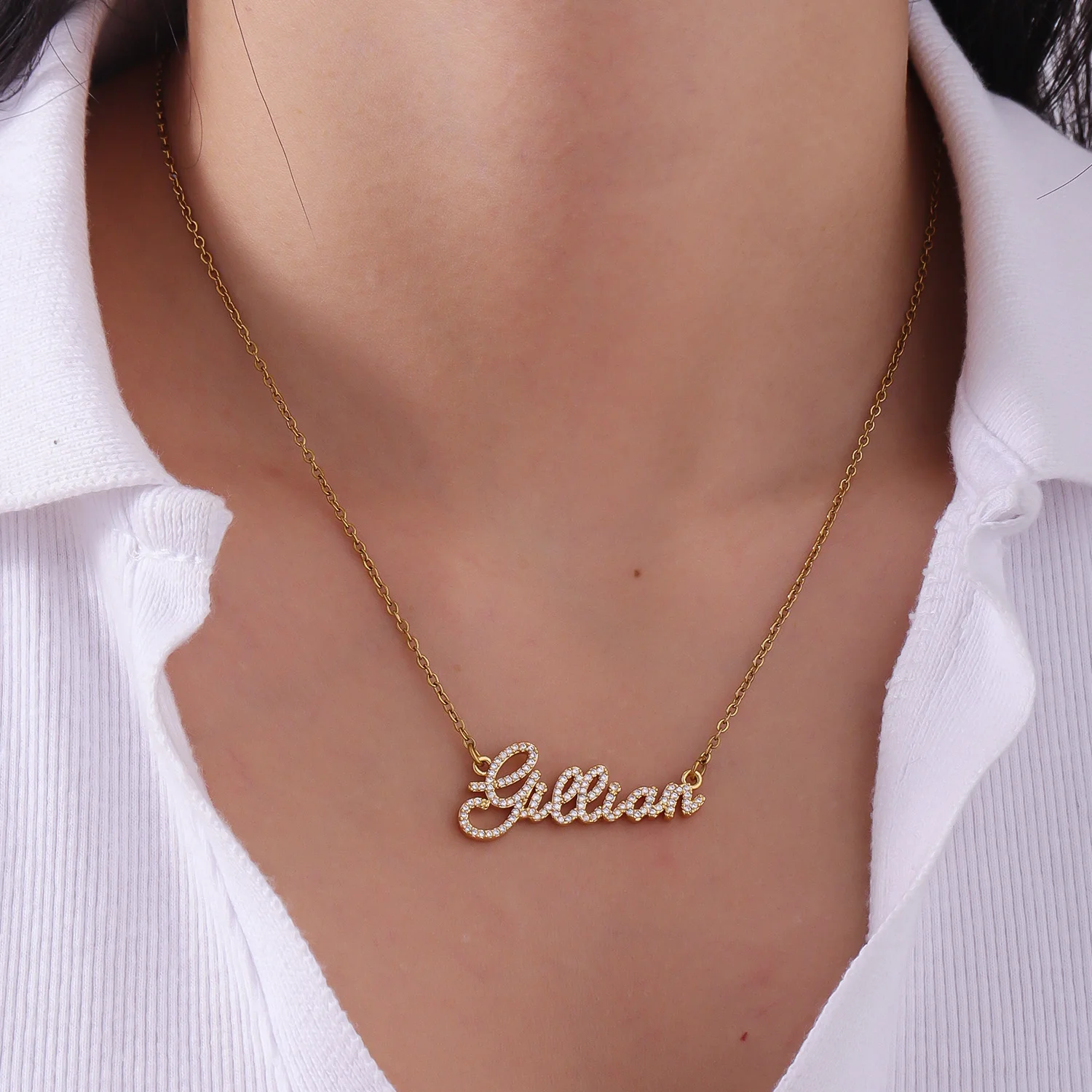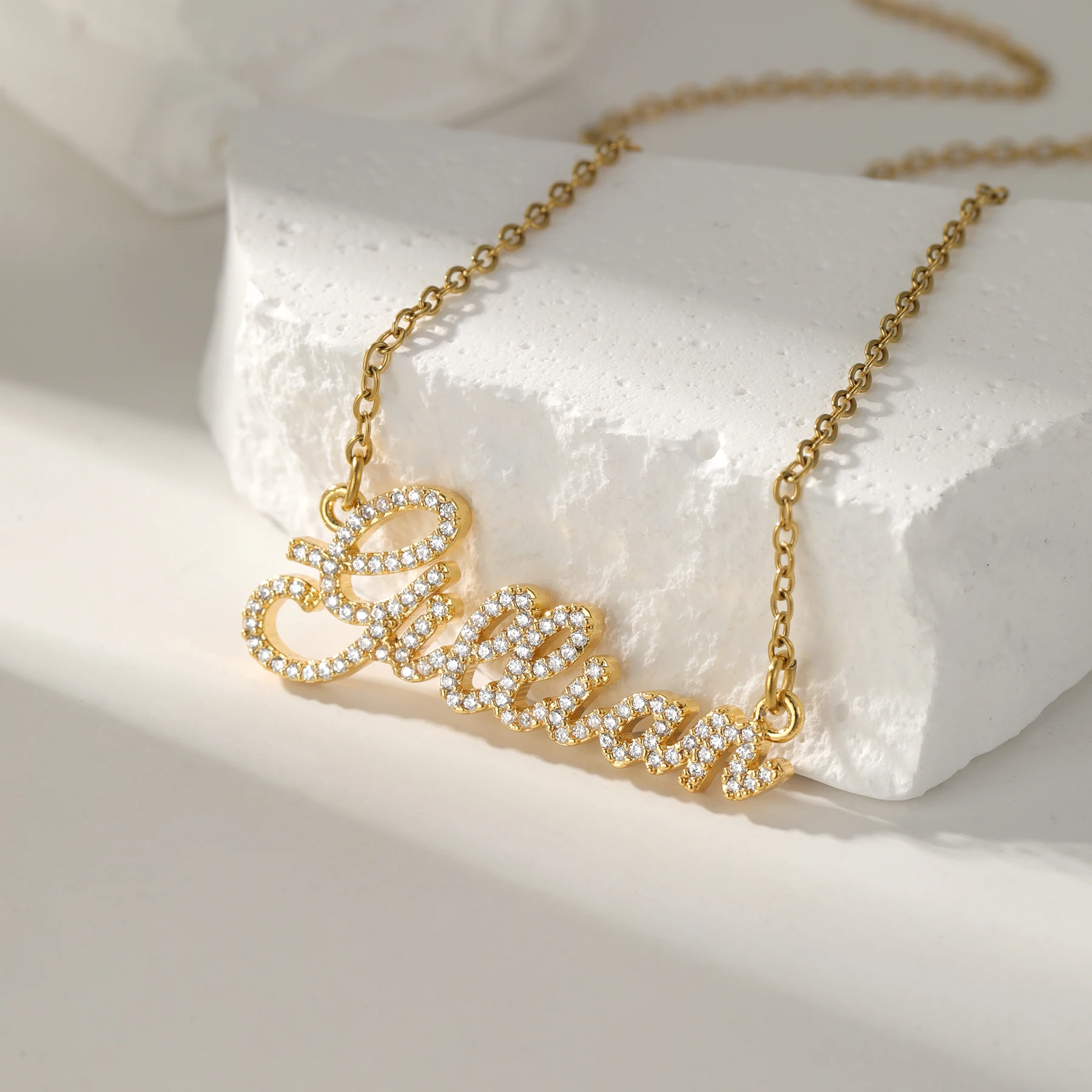 QiTian Custom Crystal Name Letter Necklace For Women K Gold Diamond Name Jewelry Necklace Give Her A Unique Gift