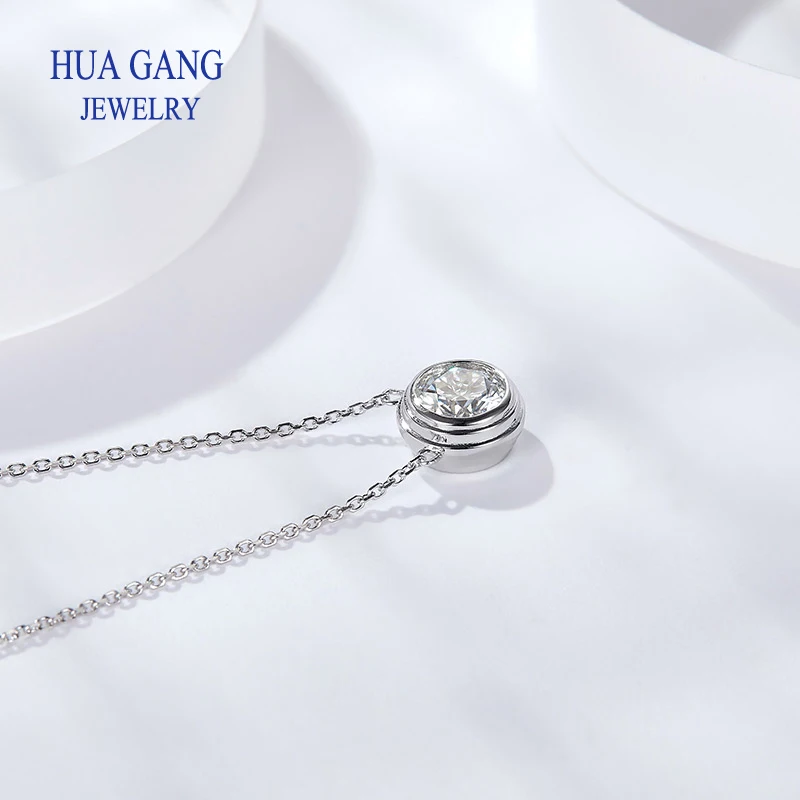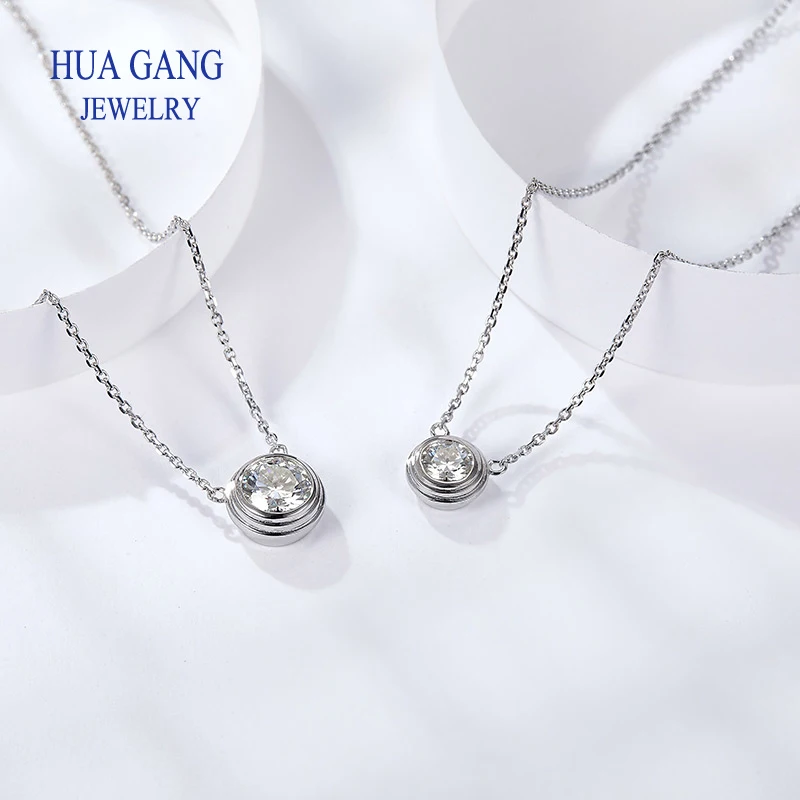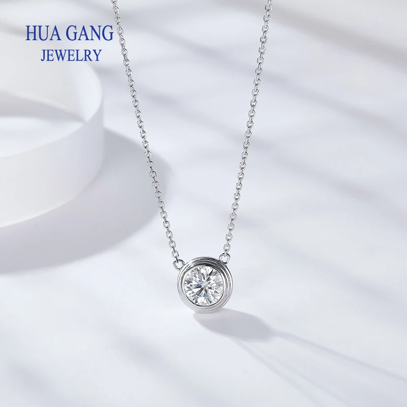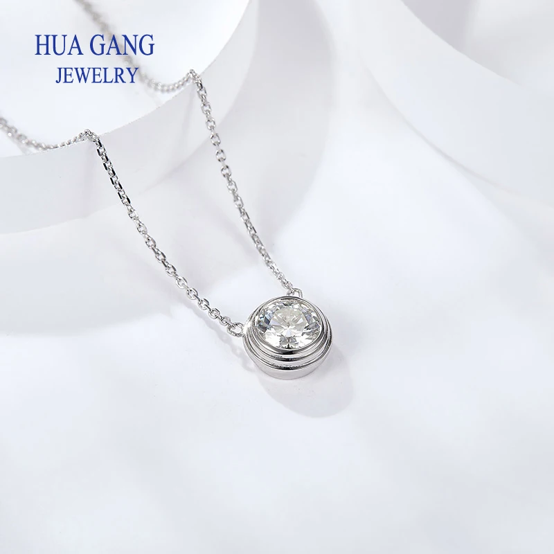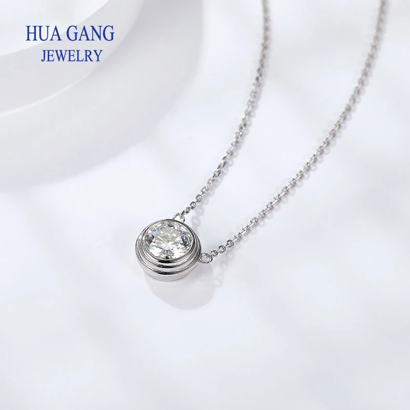 Silver 925 Necklace 1.0ct Round Moissanit Pendant Necklace For Women Elegant Clavicle Necklace Wedding Women Fashion Jewelry