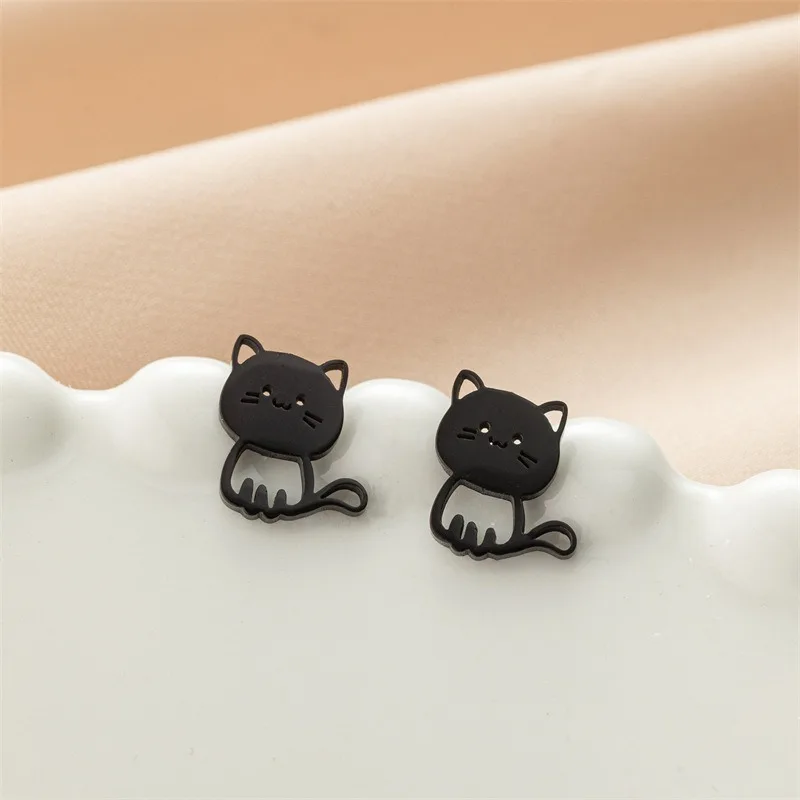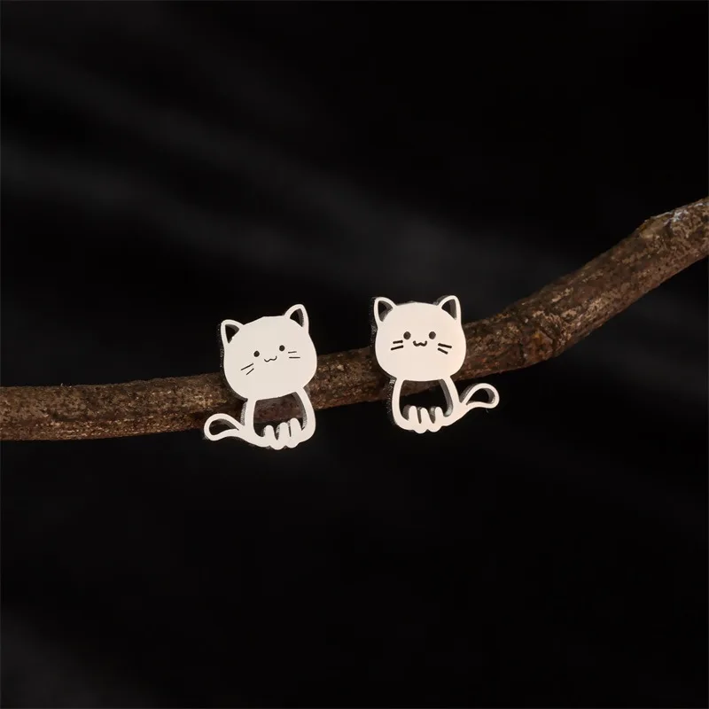 EVISPOL 2Pcs Cartoon Animal Cat Stud Earingsfor Women Girls, Cute Stainless Steel Kitten Earring Studs Funny Jewelry Gift