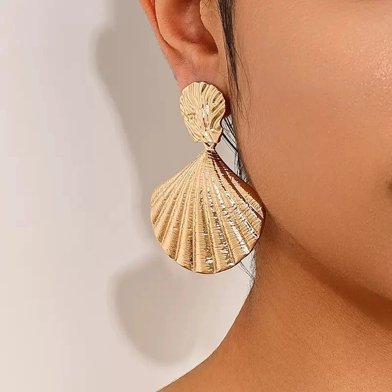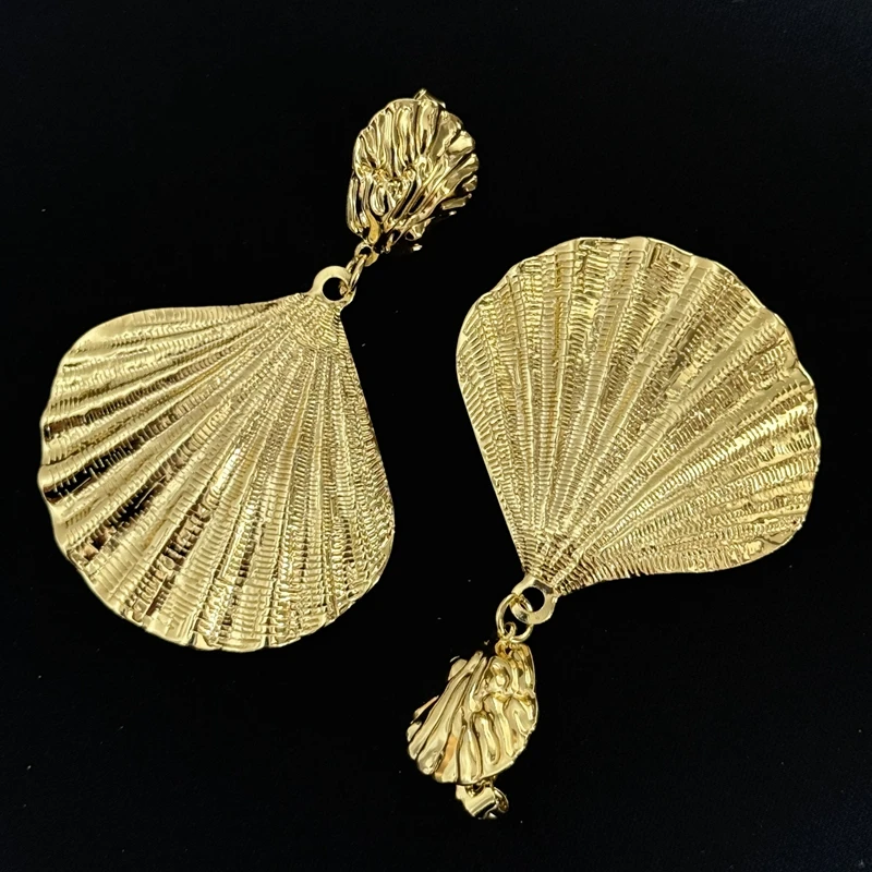 Golden Large Shell Metal Pendant Earrings Beach Fashion Jewelry Accessories Suitable For Women's Gift Selection
