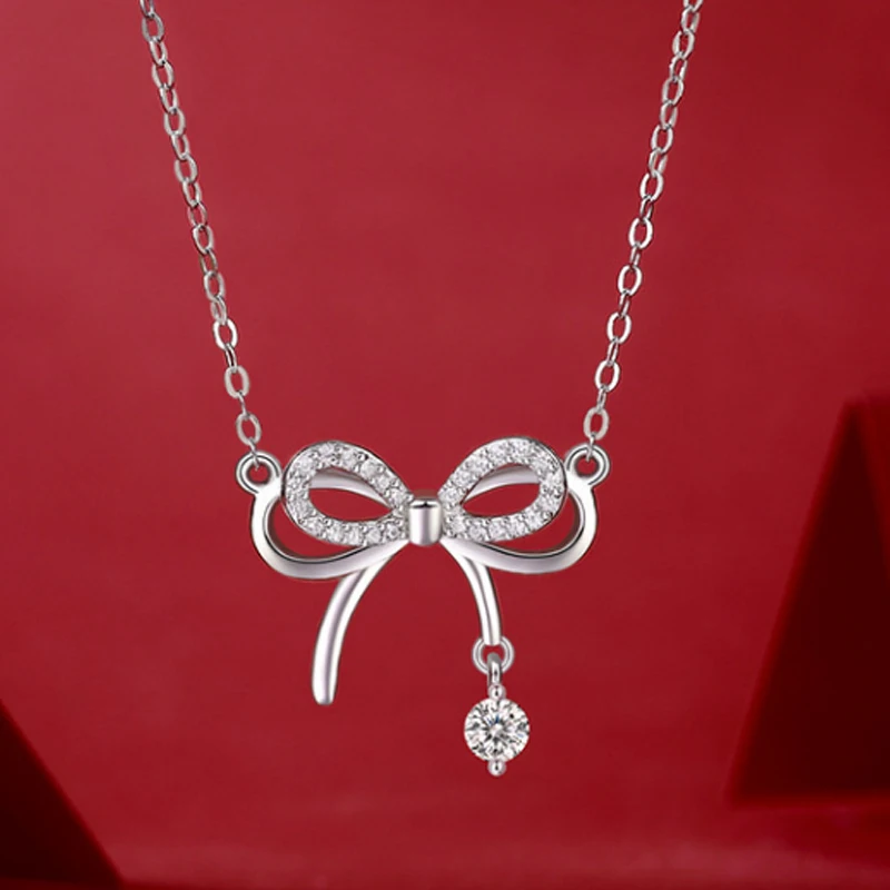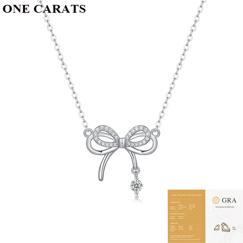 Silver 925 Necklace 1.0ct Round Moissanit Pendant Necklace For Women Elegant Clavicle Necklace Wedding Women Fashion Jewelry