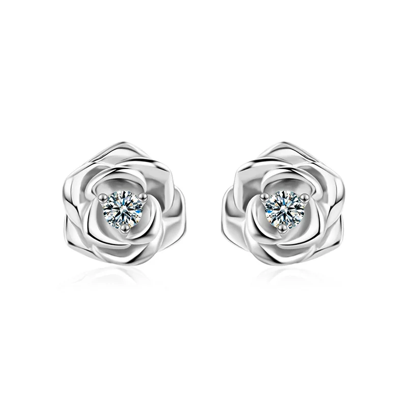 Elegant S925 Sterling Silver D-Color Moissanite Rose Earrings Exquisite Floral Jewelry for Women