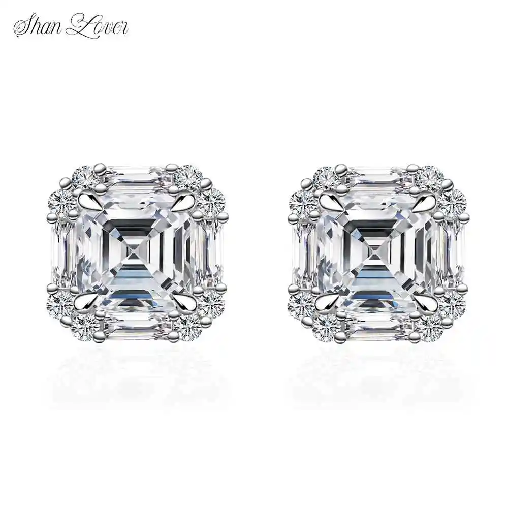 ShanLover Brand Real 925 Sterling Silver Stud Earrings MST Moissanite Gemstones Earrings Fashion S925 Silver Jewelry Accessory