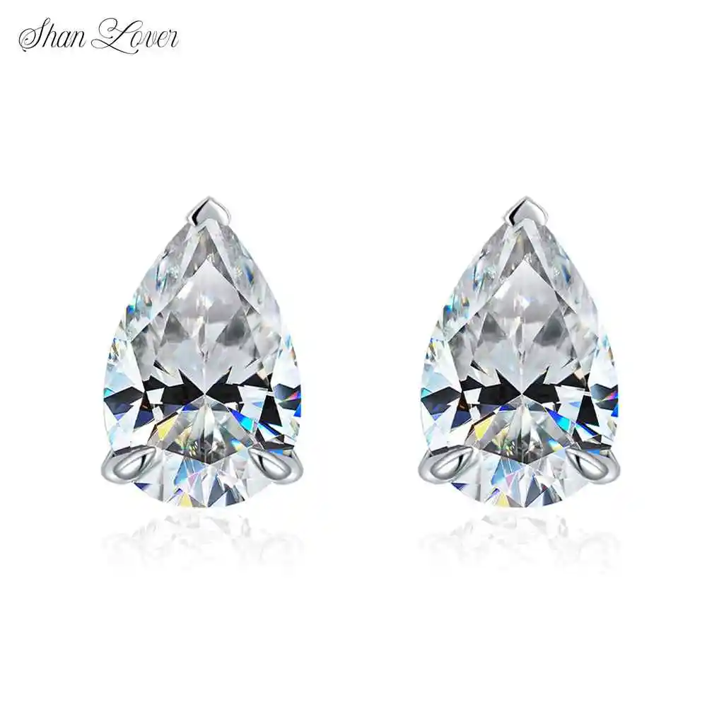ShanLover Brand High-Grade Moissanite Diamond Earrings Teardrop Design 925 Sterling Silver Stud Earrings Woman Jewelry Accessory