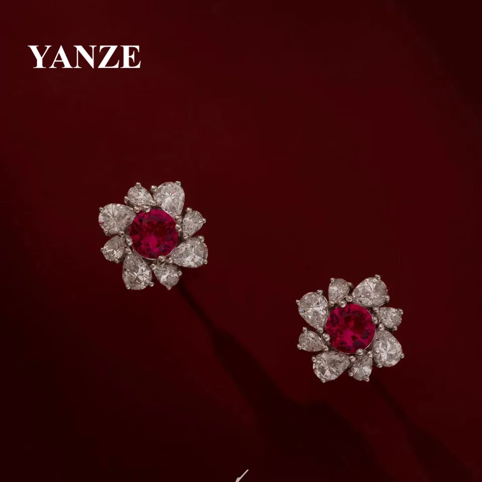 Luxury Synthetic Lab Grown Ruby Stud Earrings 925 Silver For Women Fine Jewelry Wholesale