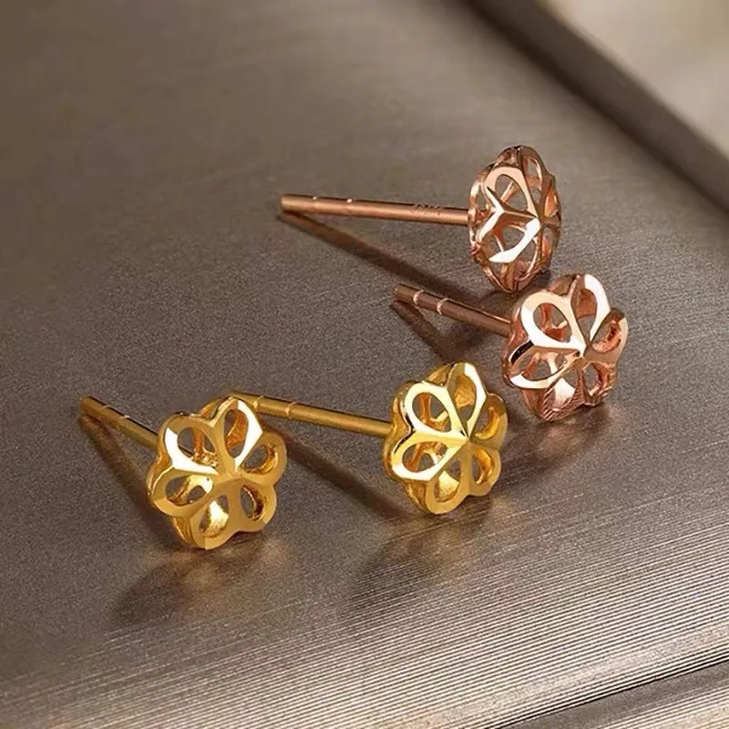 Shining Real 18k Gold Plum Blossom Earrings for Woman High-quality Luxury AU750 Earring Party Banquet Jewelry