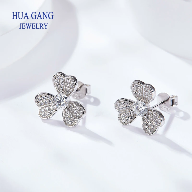 Moissanite Clover Stud Earrings Lab Created Moissanite Diamond Stud Earrings for Women Girl