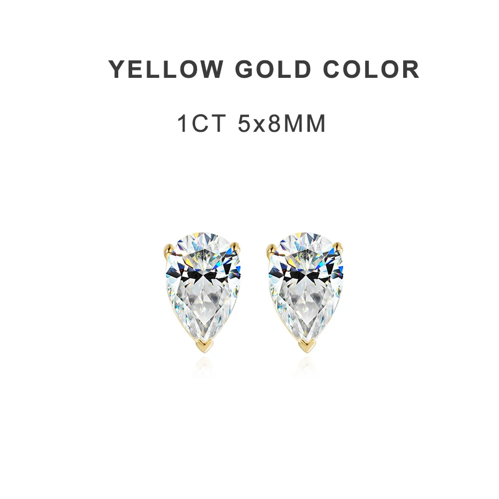 KNOBSPIN D VVS1 Pear Moissanite Earrings for Women GRA Certified Lab Grow Diamond Solid 925 Silver Plated 18k Gold Stud Earring