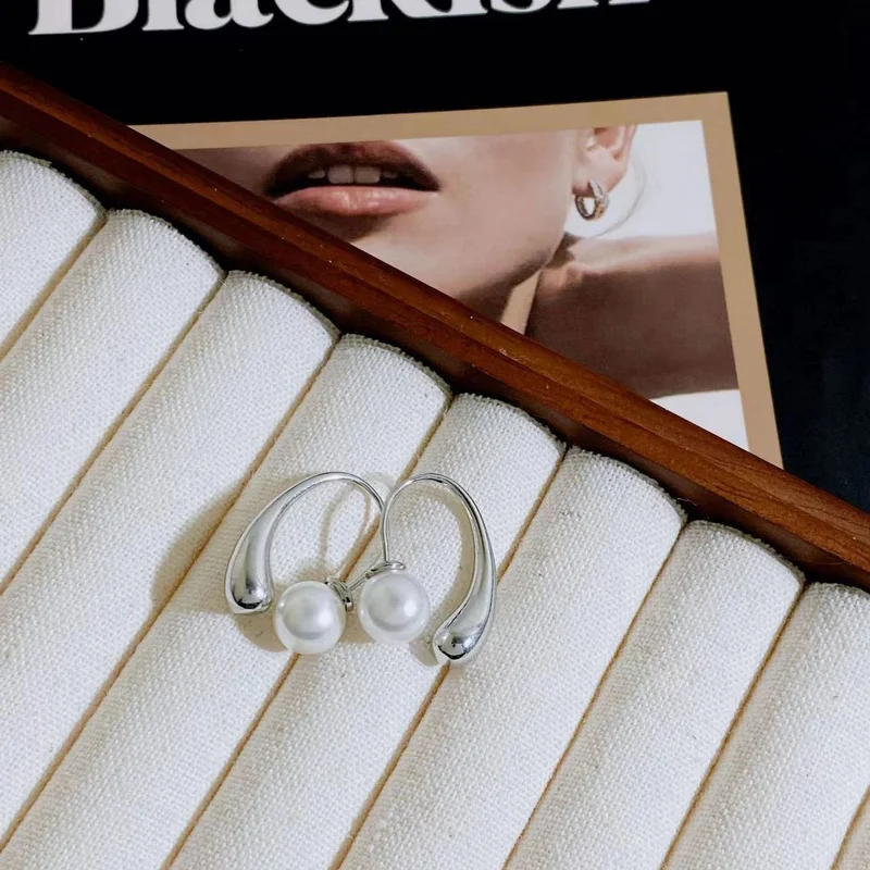 EVISPOL French Imitation Pearl Hoop Earring Small Round Circel Earrings For Women Minimalist Huggie Hoop Earring Jewelry Gift
